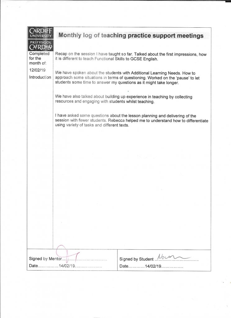 Meetings have helped me greatly to grow as a teacher as she has helped me understand my doubts about myself.