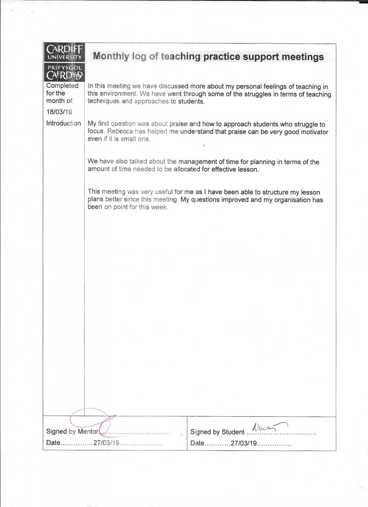 The biggest of them all was my confidence in a classroom. It is very difficult to feel the control over students as I did not feel confident about myself. However, after some observations with her and another teacher I have received an amazing feedback that has enouraged me and helped me with my confidence. Since then I have started to feel more in control and more eager to learn and be creative.